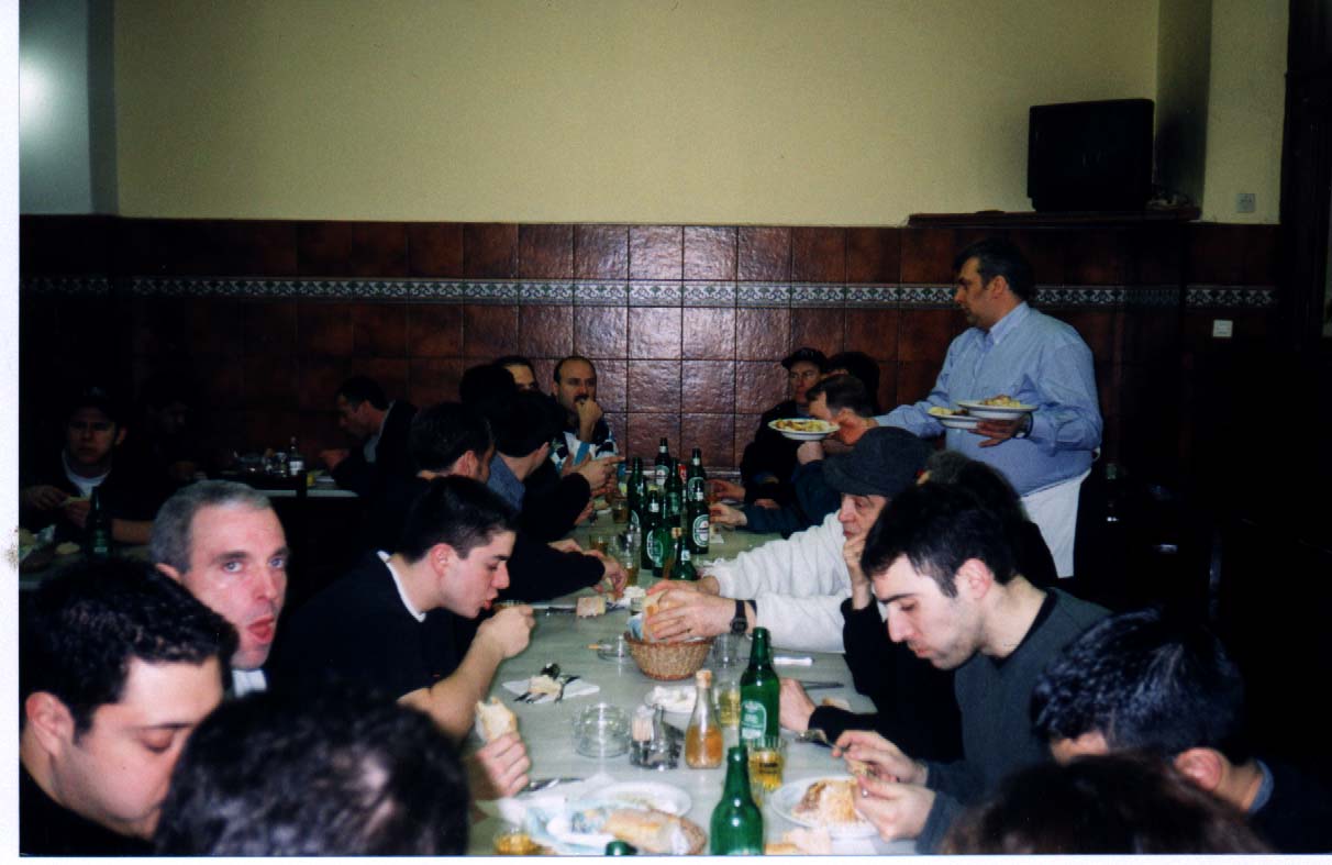 One word: O - Lym - Pia - kos! The boys enjoy fine dining at one of the Plaka's most famous places. This place became our team watering hole with multiple celebrations and fine comradery with restaurant staff. Jim Sourges is overwhelmed with the taste of his lamb and a quick glimpse of Tasso Siatras starting one of his many all night binges. Tom Zouzoulas takes one of his many naps. |