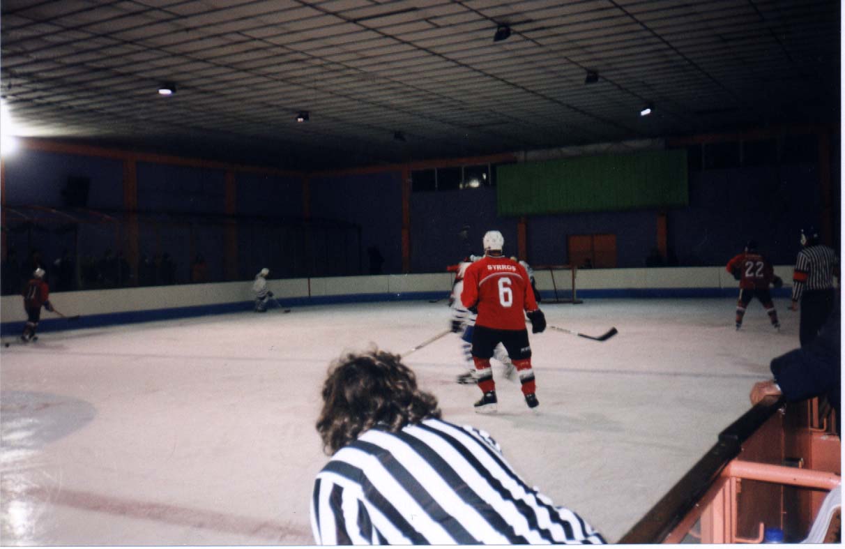 Yes, I also thought Ron Duguay retired years ago but he showed up as a guest linesman. As you can see, the Moschato Recreation Complex was filled to capacity. Bill Syrros focuses on speedy Greek skaters. |